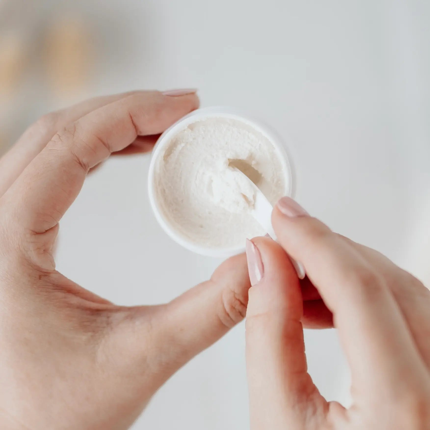 1. Scoop: After cleaning and drying your booty, use the mini spatula to scoop balm out of the jar.